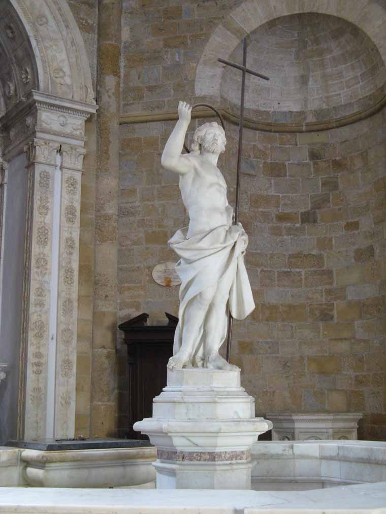 The baptismal font is crowned with a small but beautiful statue of St. John the Baptist.