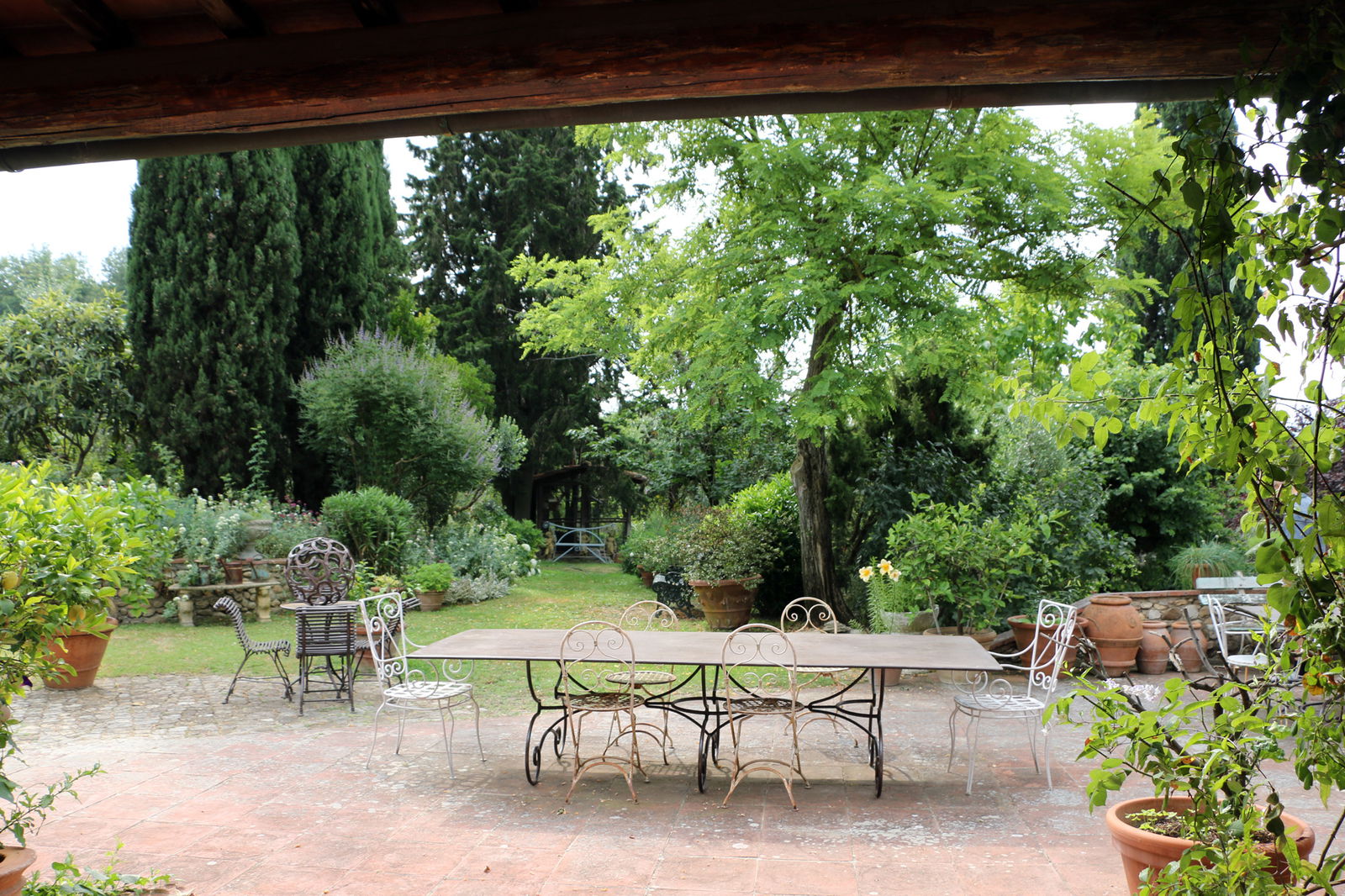 As we chat under the covered patio, we realize how comfortable and inviting the garden is. She has created spaces across the garden that invite you to sit down and relax, with a book or glass of wine in hand.
