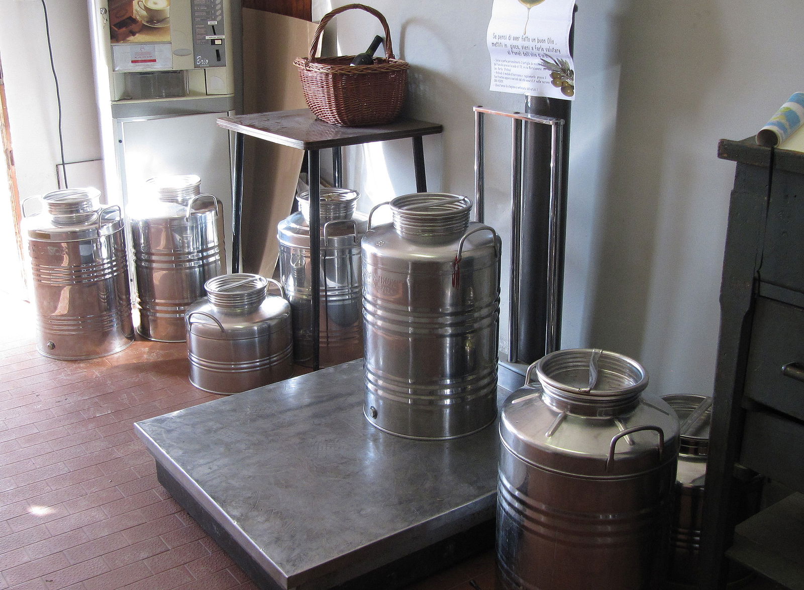 If you are visiting from mid October till December, you can make a small detour to one of the many "frantoio" that are in this area and watch as the locals bring their olives for pressing. You can watch as the olives are unloaded, weighed in, then dumped in the bin to be cleaned and carried into the pressing area. There are three phases: a first press into a thick chunky paste, a second "press" which chops it up a bit finer and then the separation from paste to oil.
