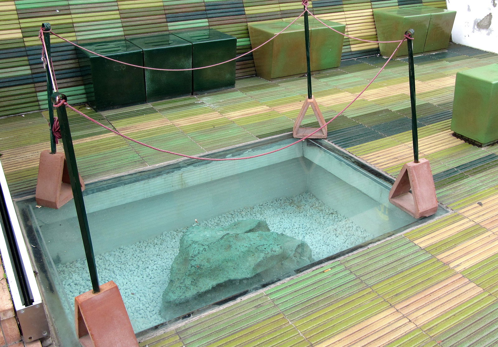 the little corner in the town square, on the opposite side of the church, in a "salotto" (little sitting area) of green tiled cotto is a mass of "elemental copper" found in the area weighing in over 500 ;kg embedded in the pavement under glass. Though no longer mined, Impruneta is one of the few areas where copper can be found in its purest form.