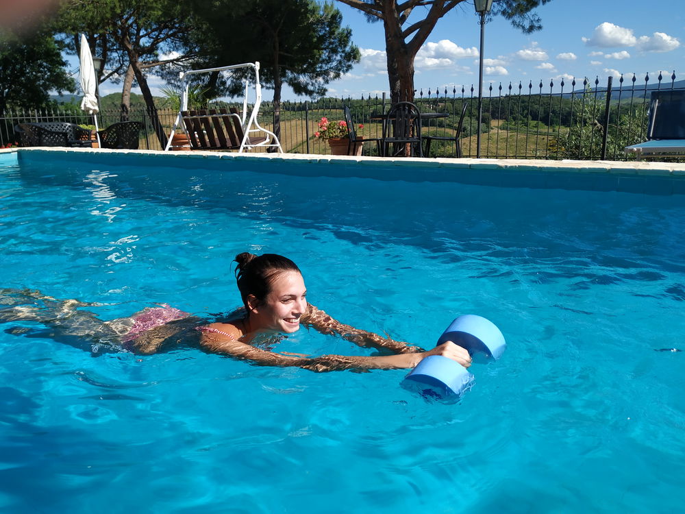 The attractions started slowly and naturally: as Ilenia and Fabio's family grew, they installed a playground with games that would entertain both their own and their guest's children. I can just imagine the fun kids must have here between the swings, the toys, the foosball, air hockey and ping-pong tables, the giant chess game and more! I can also imagine the adults joining in, as there is also a volleyball area, a basketball hoop and a mini-football field for guests to enjoy. Several of the games are near the pool, so perfect for parents who want to sit and relax while the kids play nearby... or for the entire family to play together! I felt this is a place where you can quickly start to feel quite at home and find it hard to leave.