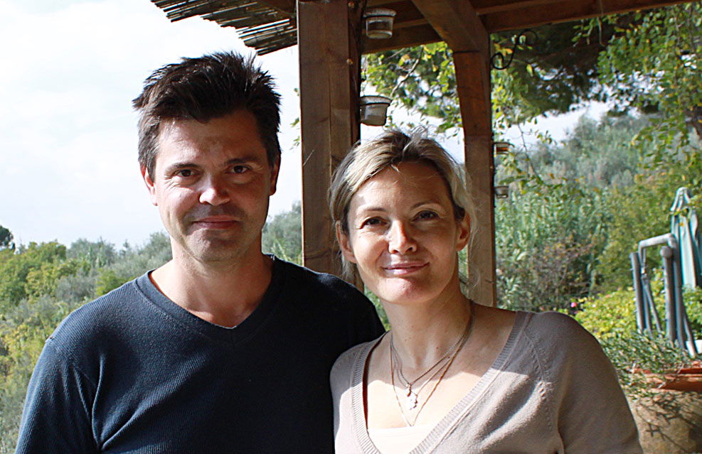The large stone farmhouse sits on the side of the hill enjoying the splendid view over the valley. We park and are greeted warmly by Ilenia and Fabio: it turns out that Fabio's family has owned this stunning piece of Chianti for several generations. We arrive after the wine harvest and vinification is over but before the olive harvest has started, so it's a quiet day to visit the estate. We are thus lucky to have them both greet us as it seems Fabio is normally out and about in the fields on the tractor or taking care of the farm's activities.