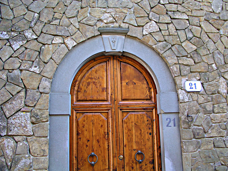 Door in Montefiorale shows the Vespa family symbol, or "wasp" that belongs to the Vespucci family. This is where Amerigo Vespucci, explorer of the 15th century for which America is named after, was born.