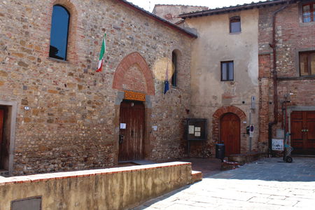 A unique urban plan has you admiring the back end of the San Bartholomew church (instead of it facing inwards opposite the government building.) Proceeding along via F. Barberino, you come to the Florentine Gate, although no longer the original one, it still makes quite a presence. The position of Barberino on the cross roads leading towards the Francigena, meant that the locals were geared to receive and care for travelers and next to it is the old pilgrim hospital (l'Ospedale dei Pelligrini), built in 1365 by Taddeo di Cecco and now housing the modern town library.
