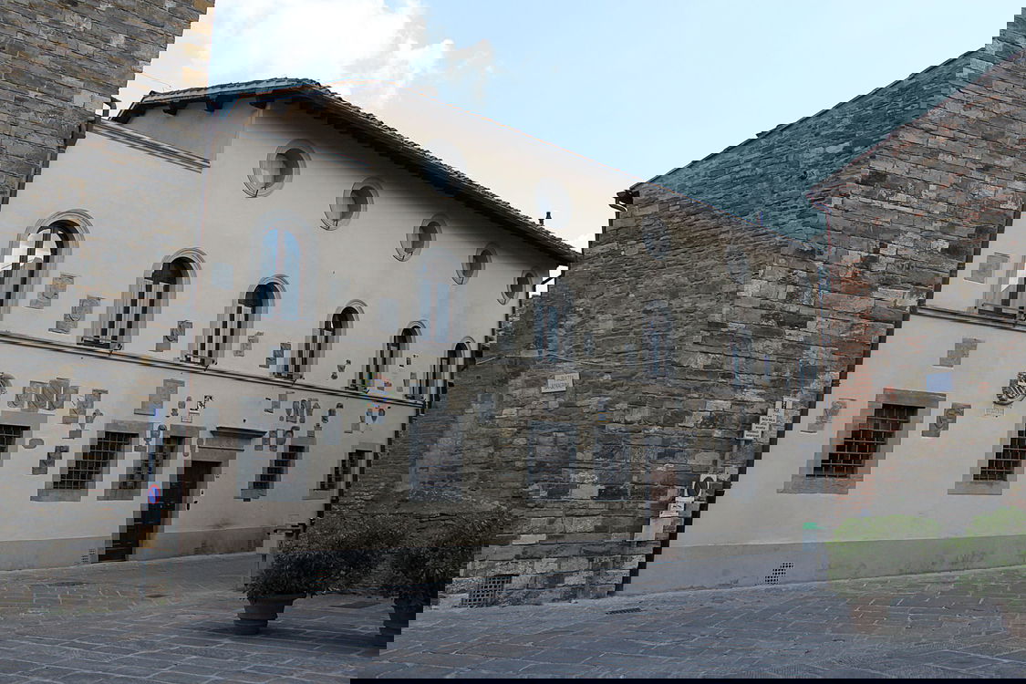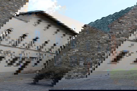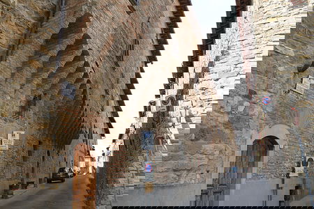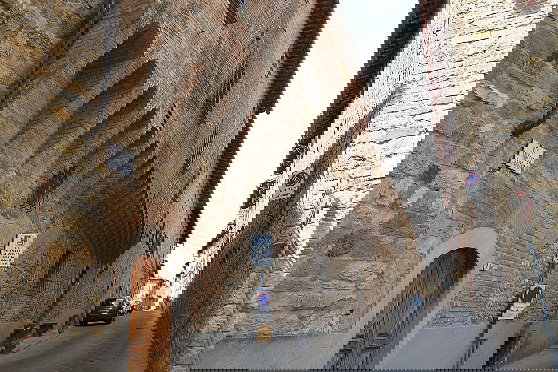 To the left of the entrance is Palazzo del Cardinale, sporting the emblem of the Barbeini family and that of Pope Urbano VIII. Halfway down the street, the Palazzo Pretorio faces the small square with its facade decorated with 35 coats of arms of important noble families since 15th century, including several Florentine families.