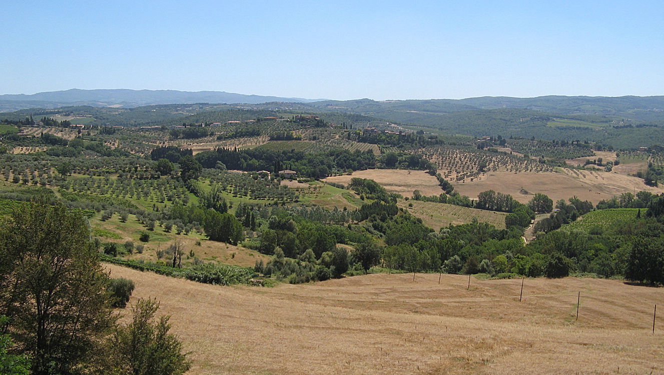 beautiful medieval village surrounded by green Tuscan countryside between Florence & Siena